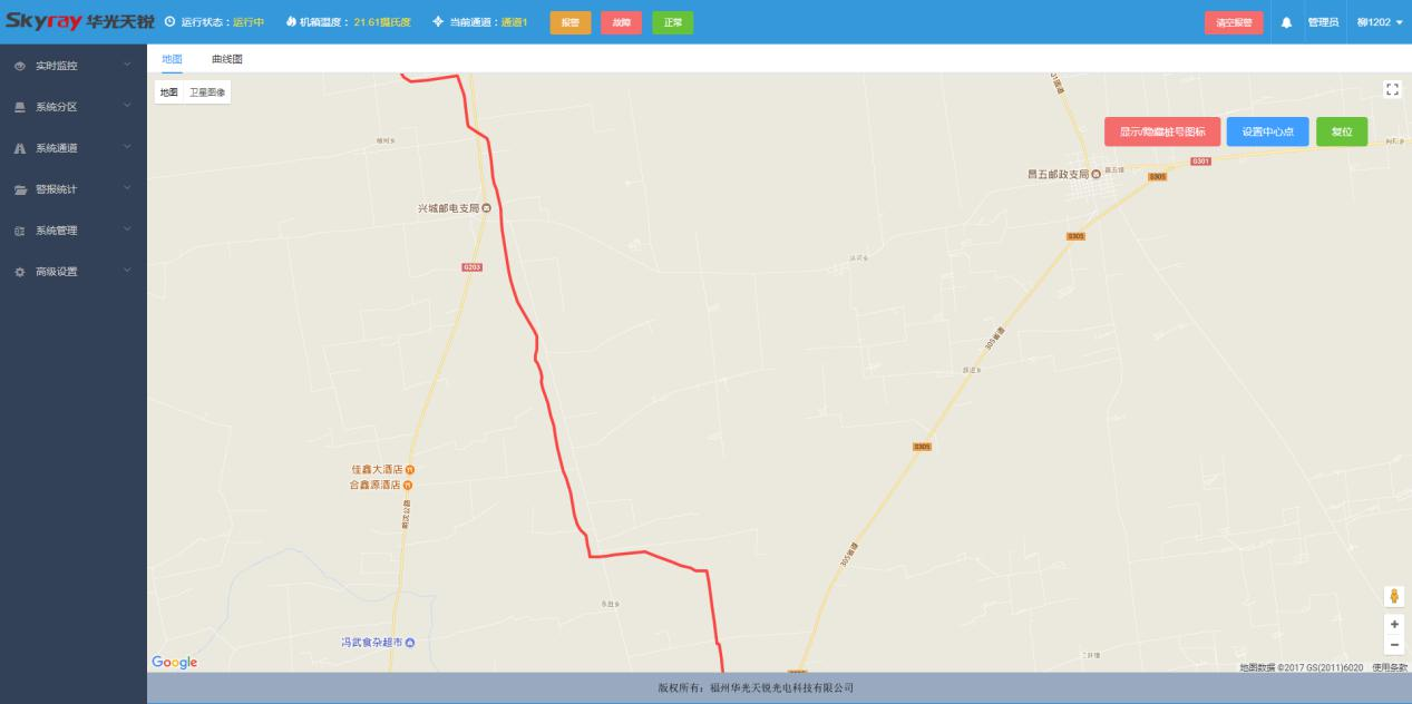 天然氣管線(xiàn)泄漏安全監(jiān)測(cè)系統(tǒng)采用目前先進(jìn)的管道溫度系統(tǒng)監(jiān)測(cè)技術(shù)。僅用天然氣管線(xiàn)中的通訊光纜的一根光纖就可實(shí)現(xiàn)長(zhǎng)達(dá)幾十公里的天然氣管道泄漏定位報(bào)警。通過(guò)基于通訊光纜的分布式光纖測(cè)溫技術(shù),對(duì)天然氣管線(xiàn)進(jìn)行在線(xiàn)溫度分布監(jiān)測(cè),就能夠通過(guò)管道溫度異常點(diǎn)的探測(cè),準(zhǔn)確發(fā)現(xiàn)管道的泄漏點(diǎn),并及時(shí)的進(jìn)行報(bào)警和定位。如果天然氣管線(xiàn)發(fā)生泄漏,高壓氣體的體積膨脹將引起漏點(diǎn)附近溫度的下降,分布式光纖測(cè)溫系統(tǒng)同樣可通過(guò)溫度異常點(diǎn)的探測(cè),發(fā)現(xiàn)并定位天然氣管線(xiàn)的泄漏點(diǎn)。通過(guò)對(duì)天然氣管線(xiàn)進(jìn)行在線(xiàn)的分布式溫度監(jiān)測(cè),并將系統(tǒng)設(shè)備接入管道監(jiān)測(cè)系統(tǒng)局域網(wǎng),通過(guò)網(wǎng)絡(luò)信號(hào)可將溫度信息上傳給中央服務(wù)器??稍谡麄€(gè)天然氣管線(xiàn)線(xiàn)路發(fā)生管道泄漏以及事故初期階段,第一時(shí)間發(fā)現(xiàn)并報(bào)告預(yù)警點(diǎn)的具體位置、溫度變化、溫度下降走向等信息數(shù)據(jù),為天然氣管線(xiàn)管理部門(mén)及其它相關(guān)部門(mén)及時(shí)定位、分析可能發(fā)生的管道泄漏事故提供可靠堅(jiān)實(shí)的信息獲取手段,為天然氣管線(xiàn)系統(tǒng)安全運(yùn)行提供高效的安全保障。本系統(tǒng)具有本質(zhì)防爆、抗強(qiáng)電磁干擾、電絕緣性好、防雷擊、高精度、重量輕、體積小等優(yōu)點(diǎn),適合在易燃、易爆等高危環(huán)境應(yīng)用。設(shè)備聯(lián)網(wǎng)后,通過(guò)載入百度地圖顯示光纜所在位置地圖,并設(shè)定中心點(diǎn),選定當(dāng)?shù)厮谖恢茫筛鶕?jù)管道的走向在地圖上標(biāo)出光纜走向圖,當(dāng)發(fā)生報(bào)警時(shí),界面會(huì)出現(xiàn)一個(gè)彈窗,顯示報(bào)警地點(diǎn),報(bào)警時(shí)間等。