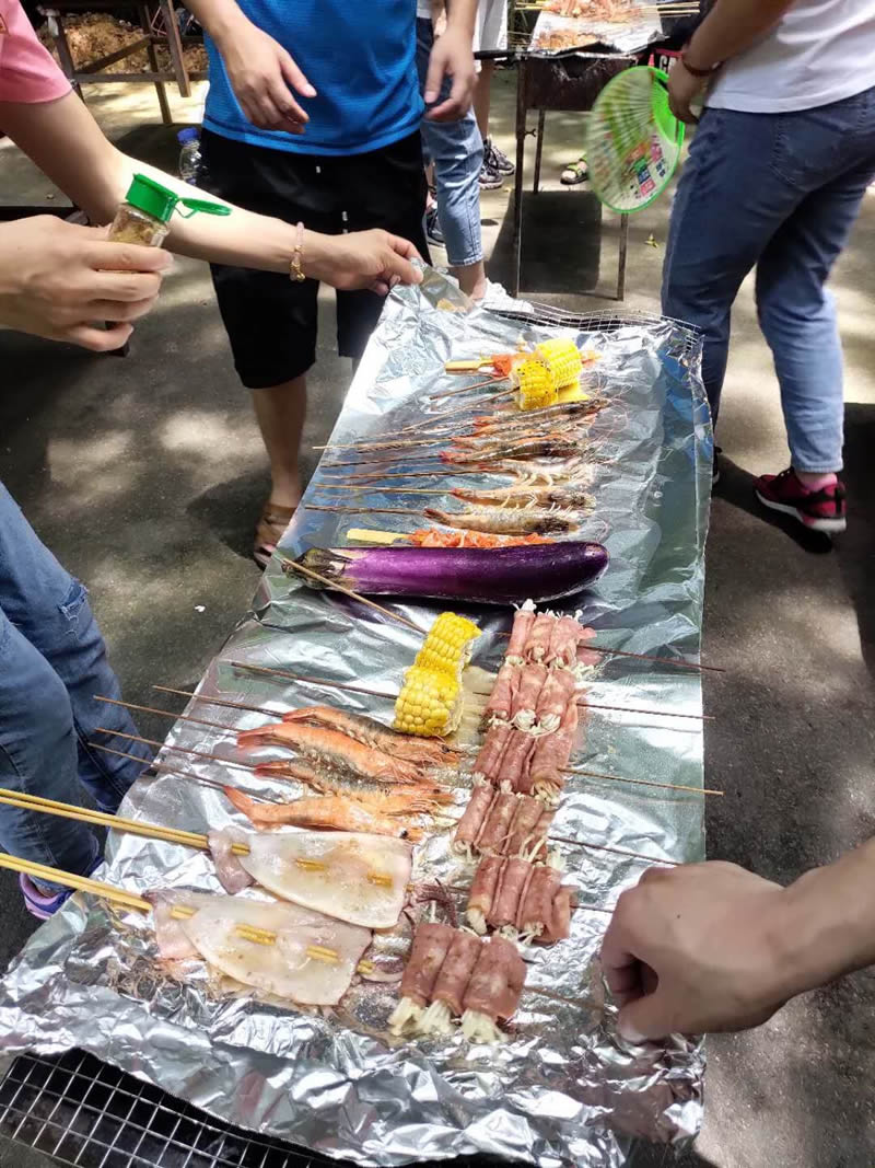 燒烤的食物十分豐富,有海鮮,肉類,蔬菜,滿足各種不同口味人群的需求。
